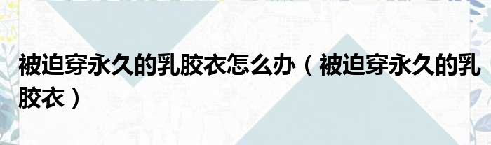 大家好,小活来为大家解答以上的问题。被迫穿永久的乳胶衣怎么办,被迫穿永久的乳胶衣这个很多人还不知道,现在让我们一起来看看吧!