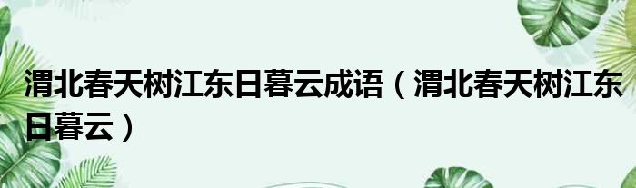 3、【出处】 唐·杜甫《春日忆李白》诗:“渭北春天树,江东日暮云。