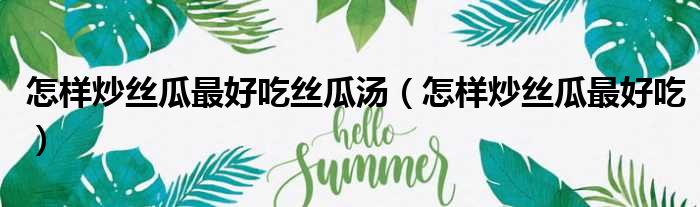 以上就是怎样炒丝瓜最好吃这篇文章的一些介绍,希望对大家有所帮助。
