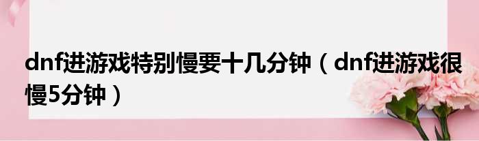 以上就是dnf进游戏很慢5分钟这篇文章的一些介绍,希望对大家有所帮助。