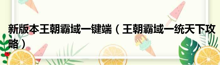 大家好,小活来为大家解答以上的问题。新版本王朝霸域一键端,王朝霸域一统天下攻略这个很多人还不知道,现在让我们一起来看看吧!