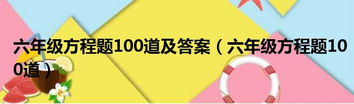大家好,小活来为大家解答以上的问题。六年级方程题100道及答案,六年级方程题100道这个很多人还不知道,现在让我们一起来看看吧!