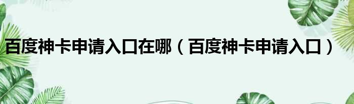你们好,最近小活发现有诸多的小伙伴们对于百度神卡申请入口在哪,百度神卡申请入口这个问题都颇为感兴趣的,今天小活为大家梳理了下,一起往下看看吧。