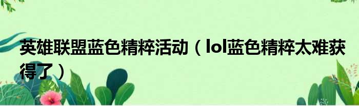 你们好,最近小活发现有诸多的小伙伴们对于英雄联盟蓝色精粹活动,lol蓝色精粹太难获得了这个问题都颇为感兴趣的,今天小活为大家梳理了下,一起往下看看吧。
