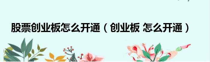 大家好,小活来为大家解答以上的问题。股票创业板怎么开通,创业板 怎么开通这个很多人还不知道,现在让我们一起来看看吧!