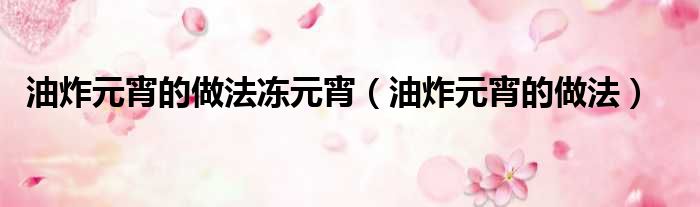 油炸元宵的做法冻元宵(油炸元宵的做法),求解答求解答,重要的事说两遍!