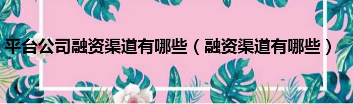 你们好,最近小活发现有诸多的小伙伴们对于平台公司融资渠道有哪些,融资渠道有哪些这个问题都颇为感兴趣的,今天小活为大家梳理了下,一起往下看看吧。