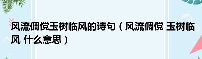 风流倜傥玉树临风的诗句(风流倜傥 玉树临风 什么意思),卡了三天了,求给个解决办法!