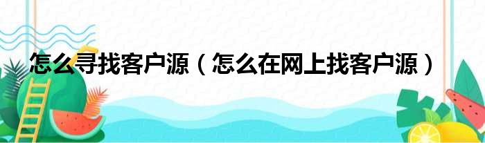 大家好,小活来为大家解答以上的问题。怎么寻找客户源,怎么在网上找客户源这个很多人还不知道,现在让我们一起来看看吧!