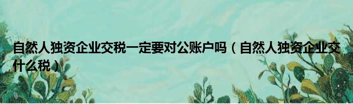 大家好,小活来为大家解答以上的问题。自然人独资企业交税一定要对公账户吗,自然人独资企业交什么税这个很多人还不知道,现在让我们一起来看看吧!