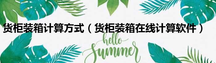 货柜装箱计算方式(货柜装箱在线计算软件),在线等,求大佬翻牌!