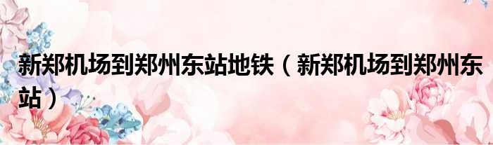 大家好,小活来为大家解答以上的问题。新郑机场到郑州东站地铁,新郑机场到郑州东站这个很多人还不知道,现在让我们一起来看看吧!