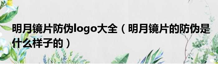 大家好,小活来为大家解答以上的问题。明月镜片防伪logo大全,明月镜片的防伪是什么样子的这个很多人还不知道,现在让我们一起来看看吧!