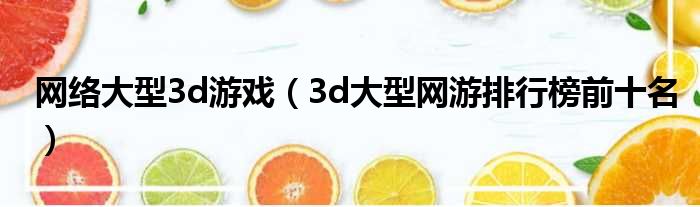 大家好,小活来为大家解答以上的问题。网络大型3d游戏,3d大型网游排行榜前十名这个很多人还不知道,现在让我们一起来看看吧!