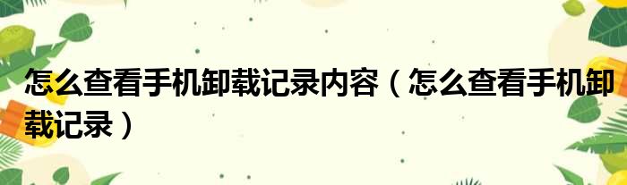 怎么查看手机卸载记录内容(怎么查看手机卸载记录),真的熬不住了,求给个答案!