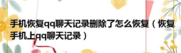 你们好,最近小活发现有诸多的小伙伴们对于手机恢复qq聊天记录删除了怎么恢复,恢复手机上qq聊天记录这个问题都颇为感兴趣的,今天小活为大家梳理了下,一起往下看看吧。