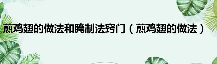 你们好,最近小活发现有诸多的小伙伴们对于煎鸡翅的做法和腌制法窍门,煎鸡翅的做法这个问题都颇为感兴趣的,今天小活为大家梳理了下,一起往下看看吧。