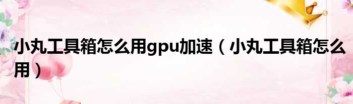小丸工具箱怎么用gpu加速(小丸工具箱怎么用),求大佬施舍一个解决方案,感激不尽!