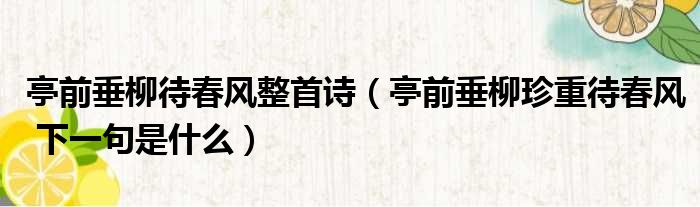 大家好,小活来为大家解答以上的问题。亭前垂柳待春风整首诗,亭前垂柳珍重待春风 下一句是什么这个很多人还不知道,现在让我们一起来看看吧!