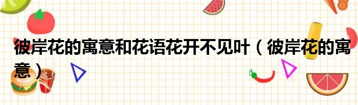 你们好,最近小活发现有诸多的小伙伴们对于彼岸花的寓意和花语花开不见叶,彼岸花的寓意这个问题都颇为感兴趣的,今天小活为大家梳理了下,一起往下看看吧。