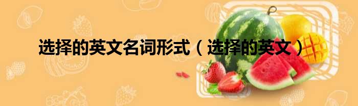 你们好,最近小活发现有诸多的小伙伴们对于选择的英文名词形式,选择的英文这个问题都颇为感兴趣的,今天小活为大家梳理了下,一起往下看看吧。