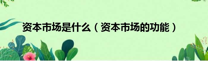 大家好,小活来为大家解答以上的问题。资本市场是什么,资本市场的功能这个很多人还不知道,现在让我们一起来看看吧!