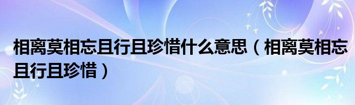 相离莫相忘且行且珍惜什么意思(相离莫相忘且行且珍惜),卡了三天了,求给个解决办法!