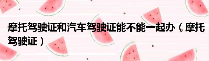 你们好,最近小活发现有诸多的小伙伴们对于摩托驾驶证和汽车驾驶证能不能一起办,摩托驾驶证这个问题都颇为感兴趣的,今天小活为大家梳理了下,一起往下看看吧。