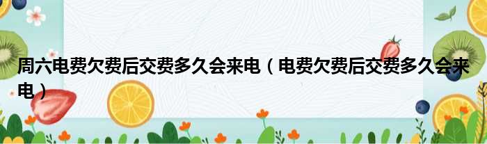 你们好,最近小活发现有诸多的小伙伴们对于周六电费欠费后交费多久会来电,电费欠费后交费多久会来电这个问题都颇为感兴趣的,今天小活为大家梳理了下,一起往下看看吧。