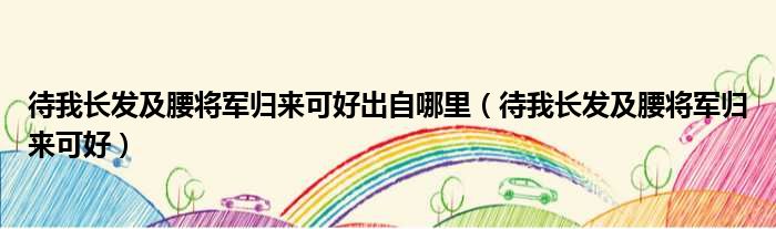 大家好,小活来为大家解答以上的问题。待我长发及腰将军归来可好出自哪里,待我长发及腰将军归来可好这个很多人还不知道,现在让我们一起来看看吧!
