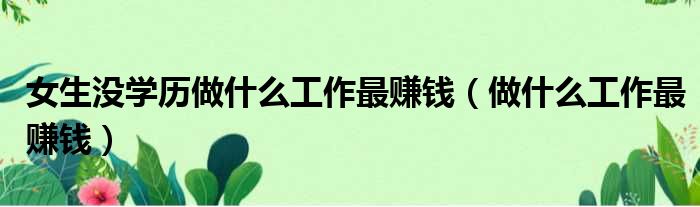 你们好,最近小活发现有诸多的小伙伴们对于女生没学历做什么工作最赚钱,做什么工作最赚钱这个问题都颇为感兴趣的,今天小活为大家梳理了下,一起往下看看吧。