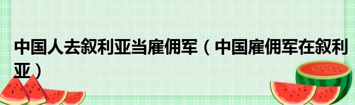 中国人去叙利亚当雇佣军(中国雇佣军在叙利亚),求大佬施舍一个解决方案,感激不尽!