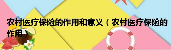 大家好,小活来为大家解答以上的问题。农村医疗保险的作用和意义,农村医疗保险的作用这个很多人还不知道,现在让我们一起来看看吧!