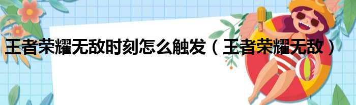 你们好,最近小活发现有诸多的小伙伴们对于王者荣耀无敌时刻怎么触发,王者荣耀无敌这个问题都颇为感兴趣的,今天小活为大家梳理了下,一起往下看看吧。