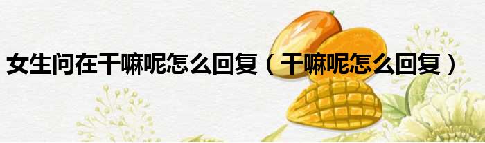 你们好,最近小活发现有诸多的小伙伴们对于女生问在干嘛呢怎么回复,干嘛呢怎么回复这个问题都颇为感兴趣的,今天小活为大家梳理了下,一起往下看看吧。