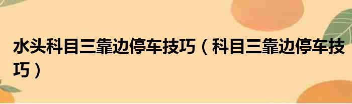 你们好,最近小活发现有诸多的小伙伴们对于水头科目三靠边停车技巧,科目三靠边停车技巧这个问题都颇为感兴趣的,今天小活为大家梳理了下,一起往下看看吧。