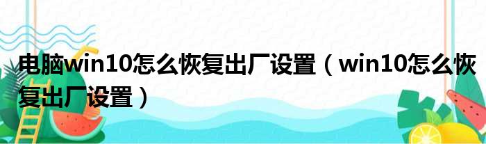 你们好,最近小活发现有诸多的小伙伴们对于电脑win10怎么恢复出厂设置,win10怎么恢复出厂设置这个问题都颇为感兴趣的,今天小活为大家梳理了下,一起往下看看吧。