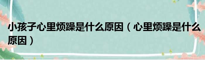 大家好,小活来为大家解答以上的问题。小孩子心里烦躁是什么原因,心里烦躁是什么原因这个很多人还不知道,现在让我们一起来看看吧!
