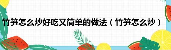 以上就是竹笋怎么炒这篇文章的一些介绍,希望对大家有所帮助。