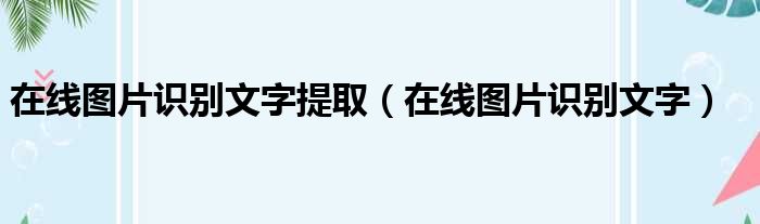 以上就是在线图片识别文字这篇文章的一些介绍,希望对大家有所帮助。