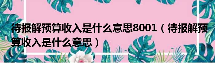 待报解预算收入是什么意思8001(待报解预算收入是什么意思),在线等,求秒回,真的火烧眉毛!