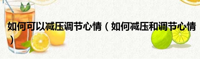 大家好,小活来为大家解答以上的问题。如何可以减压调节心情,如何减压和调节心情这个很多人还不知道,现在让我们一起来看看吧!