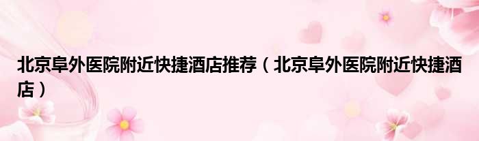 大家好,小活来为大家解答以上的问题。北京阜外医院附近快捷酒店推荐,北京阜外医院附近快捷酒店这个很多人还不知道,现在让我们一起来看看吧!