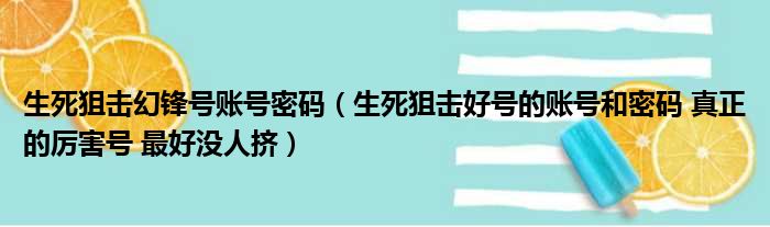 生死狙击幻锋号账号密码(生死狙击好号的账号和密码 真正的厉害号 最好没人挤),在线求解答