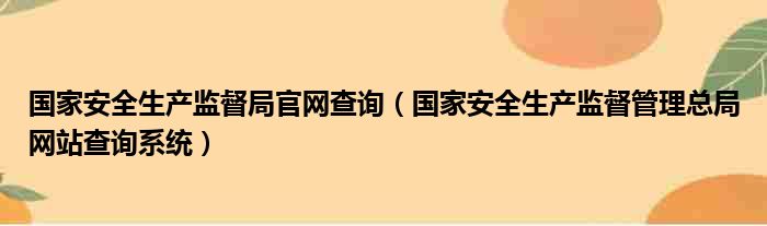 大家好,小活来为大家解答以上的问题。国家安全生产监督局官网查询,国家安全生产监督管理总局网站查询系统这个很多人还不知道,现在让我们一起来看看吧!