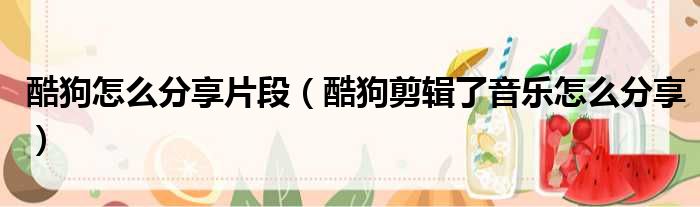 酷狗怎么分享片段(酷狗剪辑了音乐怎么分享),蹲一个大佬,求不嫌弃我问题简单!