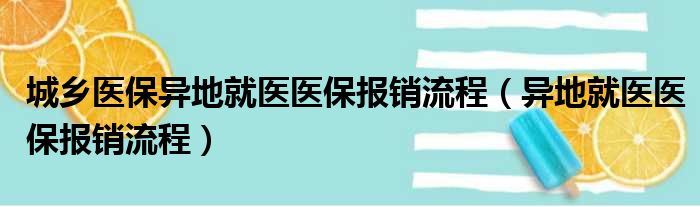 城乡医保异地就医医保报销流程(异地就医医保报销流程),这个问题折磨我三天了,求帮忙!