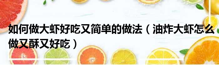你们好,最近小活发现有诸多的小伙伴们对于如何做大虾好吃又简单的做法,油炸大虾怎么做又酥又好吃这个问题都颇为感兴趣的,今天小活为大家梳理了下,一起往下看看吧。