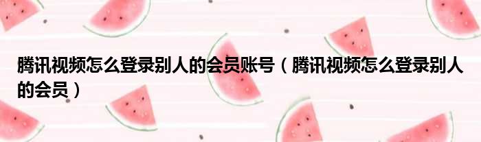 以上就是腾讯视频怎么登录别人的会员这篇文章的一些介绍,希望对大家有所帮助。
