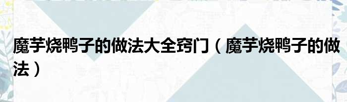 以上就是魔芋烧鸭子的做法这篇文章的一些介绍,希望对大家有所帮助。